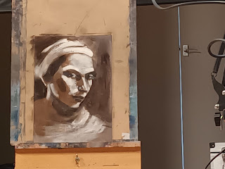 What a great evening we had at Virginia Water Art Society Ronnie Ireland showed us some ways we can paint using acrylic in layers firstly painting darks and lights on a portrait drawing and then adding layers of colour giving depth and richness to your painting and so much information on the process and painting in general we all much appreciated Thank You Ronnie